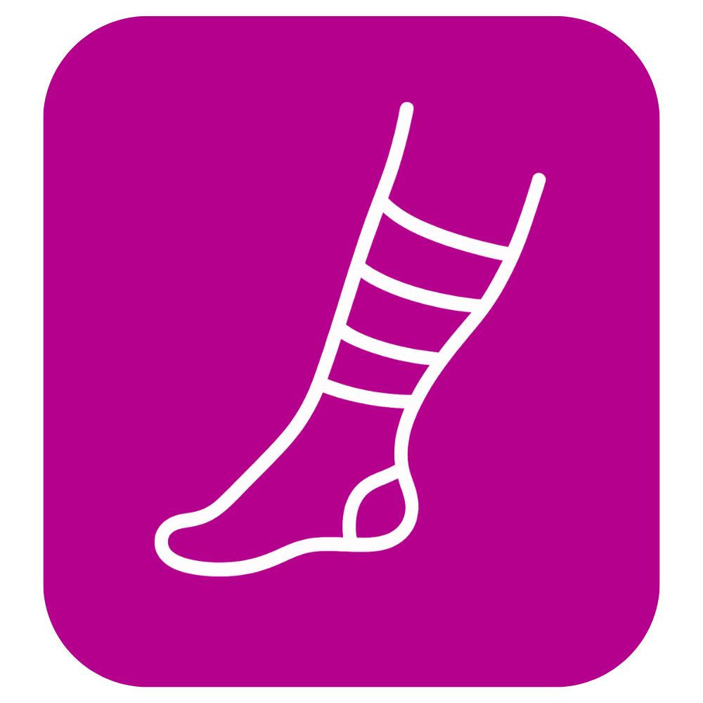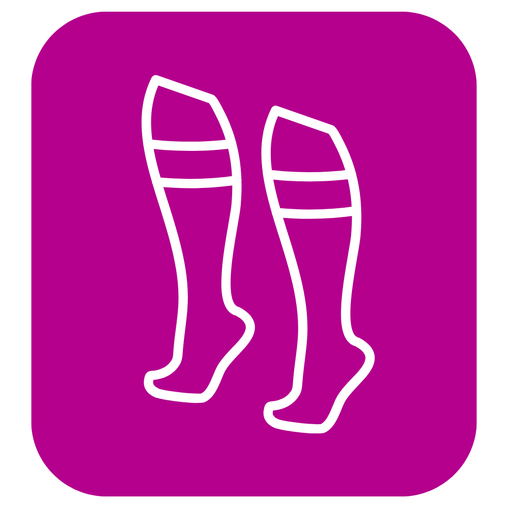 Kompressionsstrümpfe: Speziell angepasste Strümpfe üben Druck auf die Beine aus, unterstützen die Funktion der Venen und lindern Schwellungen.